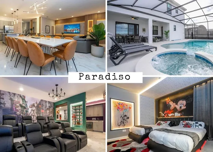 Die 11-Zimmer-Villa The Best Paradiso Vacation House liegt im Stadtviertel Sea World Orlando und bietet allen Gästen Entspannung in einem Jacuzzi oder Wassersportaktivitäten und Golf in der Gegend.